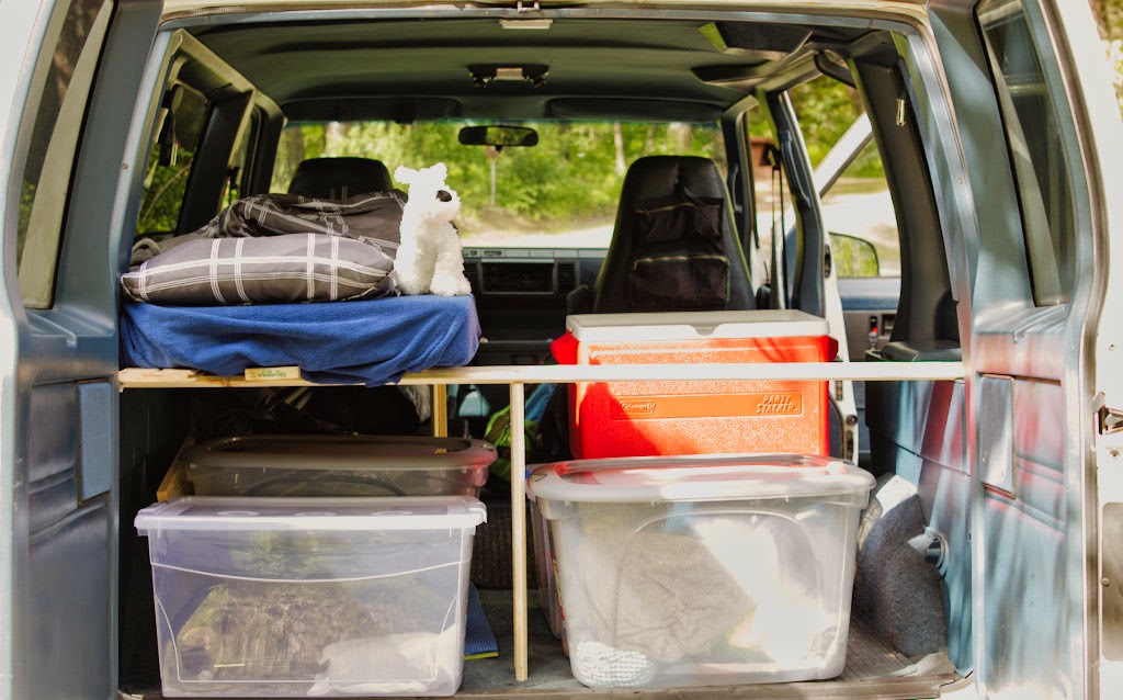 Der Van schnurrt wie ein Kätzchen und fährt einwandfrei! Ich habe ihn Anfang Juni bei einem Händler gekauft, der (laut eigener Aussage) seine Autos vor dem Verkauf gründlich überprüfen lässt. Ich habe auch drei Monate Garantie bekommen, das wird euch zwar nichts mehr nützen, doch zeugt das davon, dass der Händler sich wohl recht sicher war, dass der Wagen noch eine Weile halten wird. Sollte doch mal etwas kaputt gehen, ist der Ersatzteilemarkt für einen Safari sehr groß und somit günstig! Trotz 2WD macht er auch im Gelände eine gute Figur. Er hat "nur" einen V6 Motor, der jedoch völlig ausreichend ist und dafür sorgt, dass der Spritverbrauch niedriger ist, als bei den dicken V8 Vans. Der Zigarettenanzünder funktioniert (wichtig für Elektrogeräte aufladen). Mit meinen 1,90m kann ich sehr bequem und ausgestreckt hinten schlafen (was ich auch schon drei Wochen am Stück gemacht habe - ohne Probleme!). Momentan ist zwar nur ein Ein-Mann-Bett eingebaut, doch wäre es kein großer Aufwand, ein Doppelbett reinzuzimmern. Wie zu sehen, ist reichlich Stauraum vorhanden und das, obwohl der Van eher kurz ist, ideal also um in Vancouver und anderen Städten einen Parkplatz zu finden! In den breiten Sitzen lässt es sich in bequem hoher Sitzposition die Highways lang cruisen, ein fantastisches "Roadtrip-Feeling". Das alles gibt es für gerade einmal 1000$! (700€ für ein Auto, das sich toll fährt und in dem man schlafen und leben kann, was will man mehr?! ;)